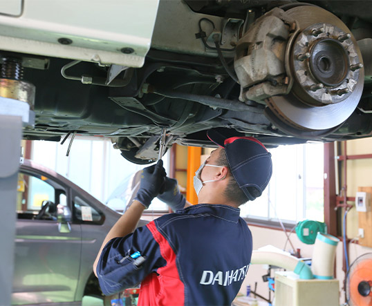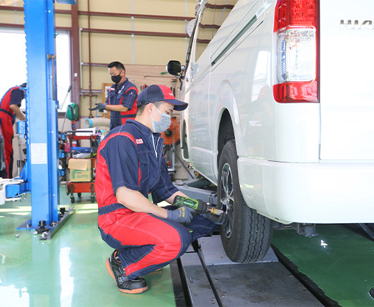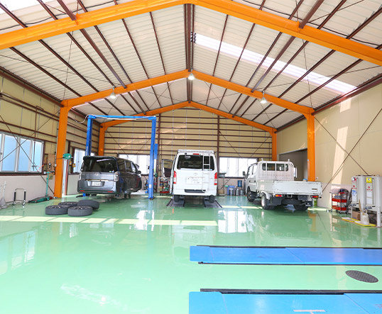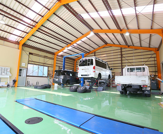 軽トラックから最新のハイブリッド車までどんな車も対応しています。整備工場も最新の機器を揃え、整備士も日々、最新の車の勉強をしております。